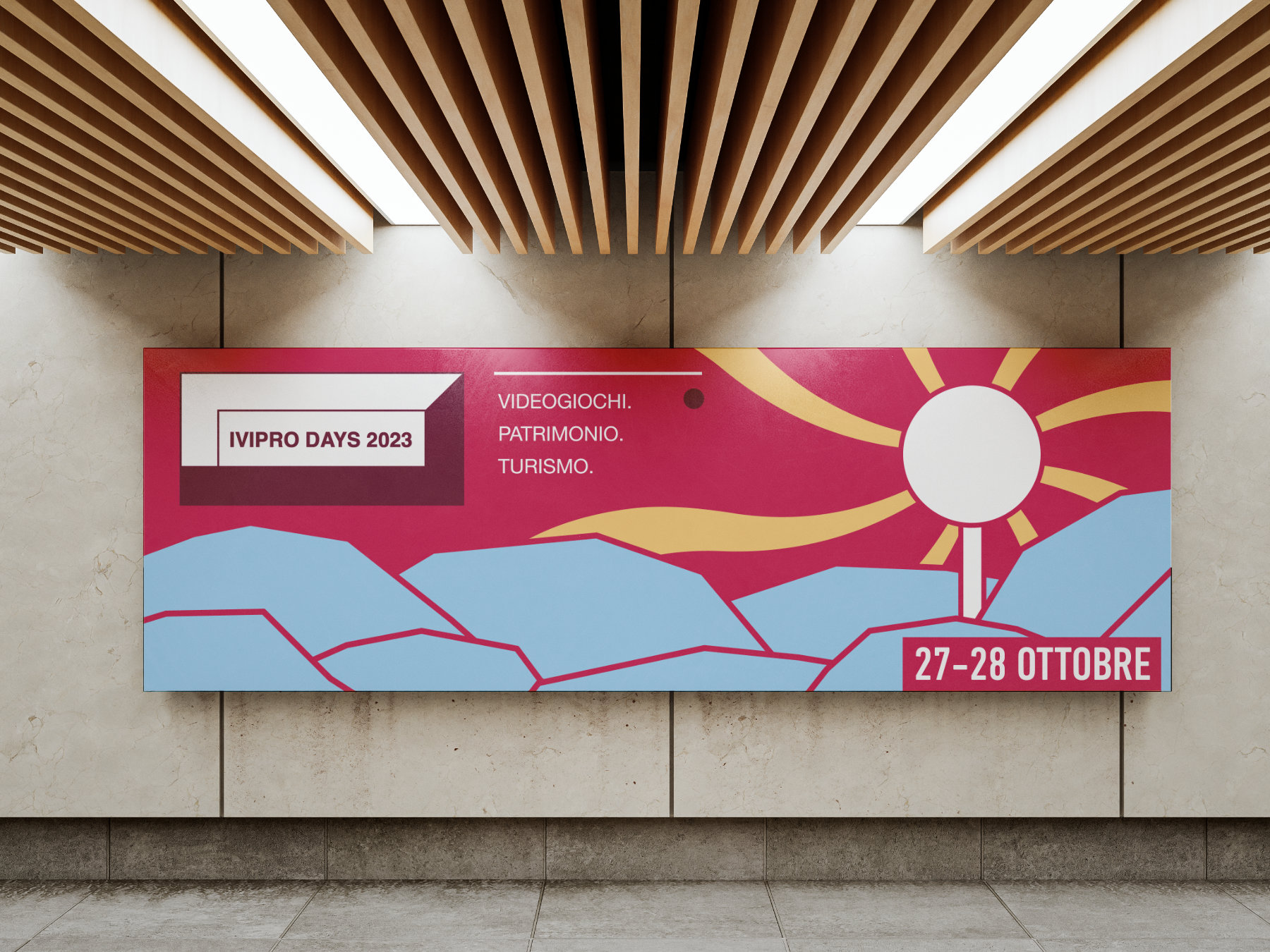The 2023 edition was inspired by the Italian territory: curvy hills where a bright sun-like arcade sticks shines in the sky.